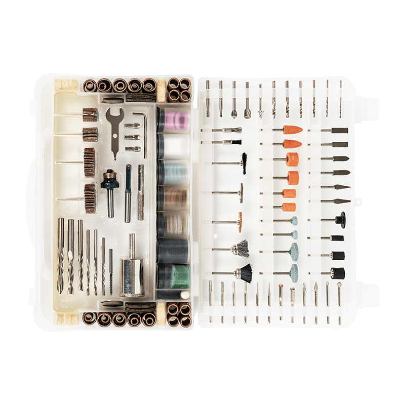 • CONJUNTO DE ACCESORIOS ROTATIVOS PRO --Una gran selección de herramientas para convertirse en profesional. ¡El set de accesorios rotativos con más de 287 piezas que incluye todas las piezas y accesorios que necesitas para afrontar cualquier proyecto de bricolaje en casa como un profesional! El juego de accesorios rotativos puede ayudarle a completar diversas tareas como cortar, esmerilar, pulir, lijar, afilar, grabar, raspar, fresar, tallar madera, taladrar con precisión, cortar agujeros, etc. Su revolucionaria hoja también contiene microhojas de corte lateral para una acción de corte suave, limpia y de 360 grados.